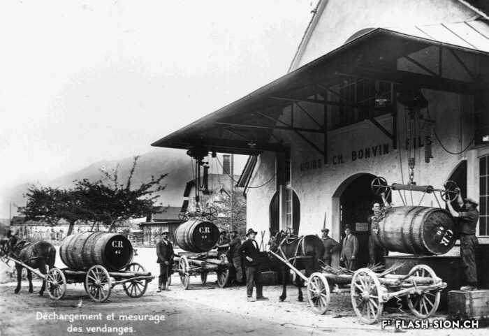Fondata nel 1858, l’azienda sedunese Hoirs Charles Bonvin Fils, è una pioniera del commercio di vino nel Vallese. Charles-Marie Bonvin, il suo fondatore, diede impulso alla tenuta e fece conoscere i vini del Vallese al di fuori del cantone e della Svizzera. Il figlio Charles (1858-1922) prese il testimone e fu seguito dai suoi due figli, Charles (1888-1937) e Félix. Nel 1932, alle cantine e agli uffici nella Rue des Vergers e nella Rue des Remparts si aggiunsero i torchi di Avenue de Tourbillon, di fronte alla stazione. In seguito, fino all’inizio degli anni Novanta, si sono trasformati in un moderno centro di pressatura e cantina. In disuso da molti anni, questi torchi abbandonati hanno attirato l’attenzione di un gruppo che ha visto in essi un potenziale culturale e ha voluto riportarli in vita in modo temporaneo. Nel 2008 e per un anno, l’associazione “Les Caves à Charles” (Le cantine di Charles) ha riportato in vita questo luogo industriale ricco di storia, per rendergli un ultimo omaggio prima della sua demolizione.